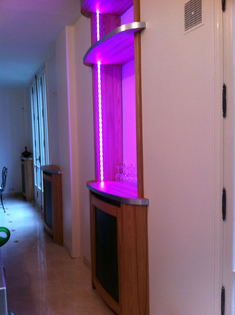 Sur cette réalisation, nous avons également réalisé des étagères supportées par les caches radiateurs.
